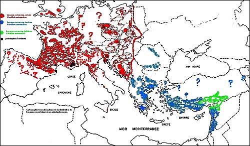 It should be noted too that for Greece and Bulgaria, it seems that many specimens present traces of an interbreeding between cervus cervus (4 articles of the club) and cervus turcicus (6 articles of the club).