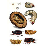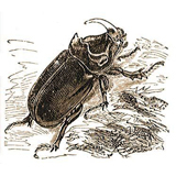 The Dynastinae (rhinoceros beetles or Rhino beetle) are among the largest of beetles, so named because of the characteristic horns borne by the males of many species in the group. In fact, the sexes are usually dimorphic (except Phileurini and some Cyclocephalini and some Pentodontini) with males having either horns or enlarged tubercles or enlarged foretarsi. The male beetles use their horns in mating battles against other males. Their larva stage is long, several years in some species. The larvae feed on rotten wood while the adults feed on nectar, plant sap and fruit. In tropical areas rhinoceros beetle larvae are sometimes fried and eaten as a bush delicacy. Dynastinae are also the strongest animals on the planet, proportionally. They can lift up to 850 times their own weight (Wikipedia).